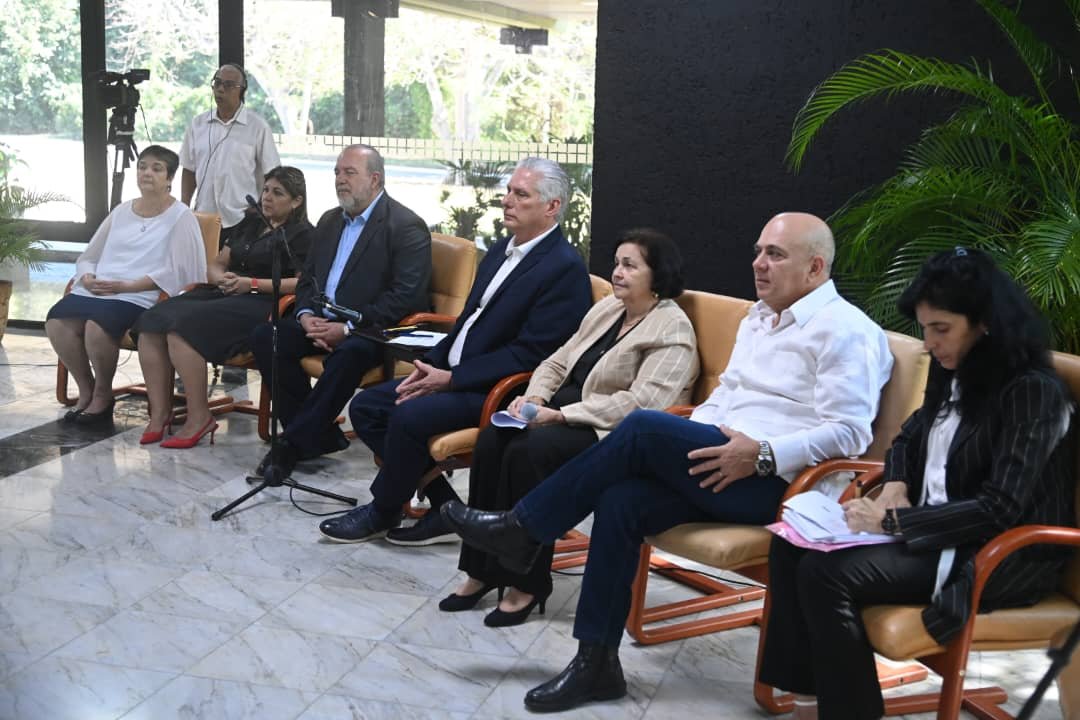 Hacia el final de sus palabras, Díaz-Canel comentó: “El concepto que hemos compartido y que hemos defendido es que no nos vamos a rendir; y lo que pedimos a ustedes, los que nos visitan, es que conscientes y con la sensibilidad que ustedes han mostrado hacia Cuba y hacia nuestro pueblo, puedan explicar la crudeza de esta situación”.