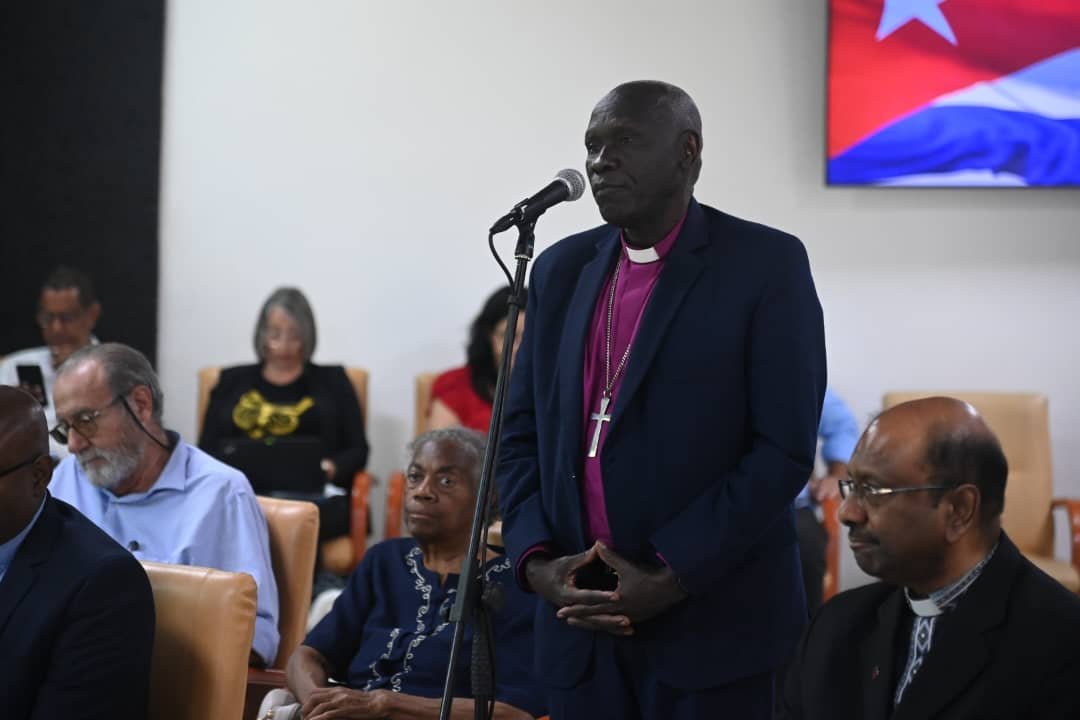 Joel Ortega Dopico, Presidente del Consejo de Iglesias de Cuba, expresó desde la emoción que la presencia de los amigos es motivo de “sano orgullo para el movimiento ecuménico cubano”, y es parte de un trabajo de muchos años. Por tal motivo, dio sentidas gracias.