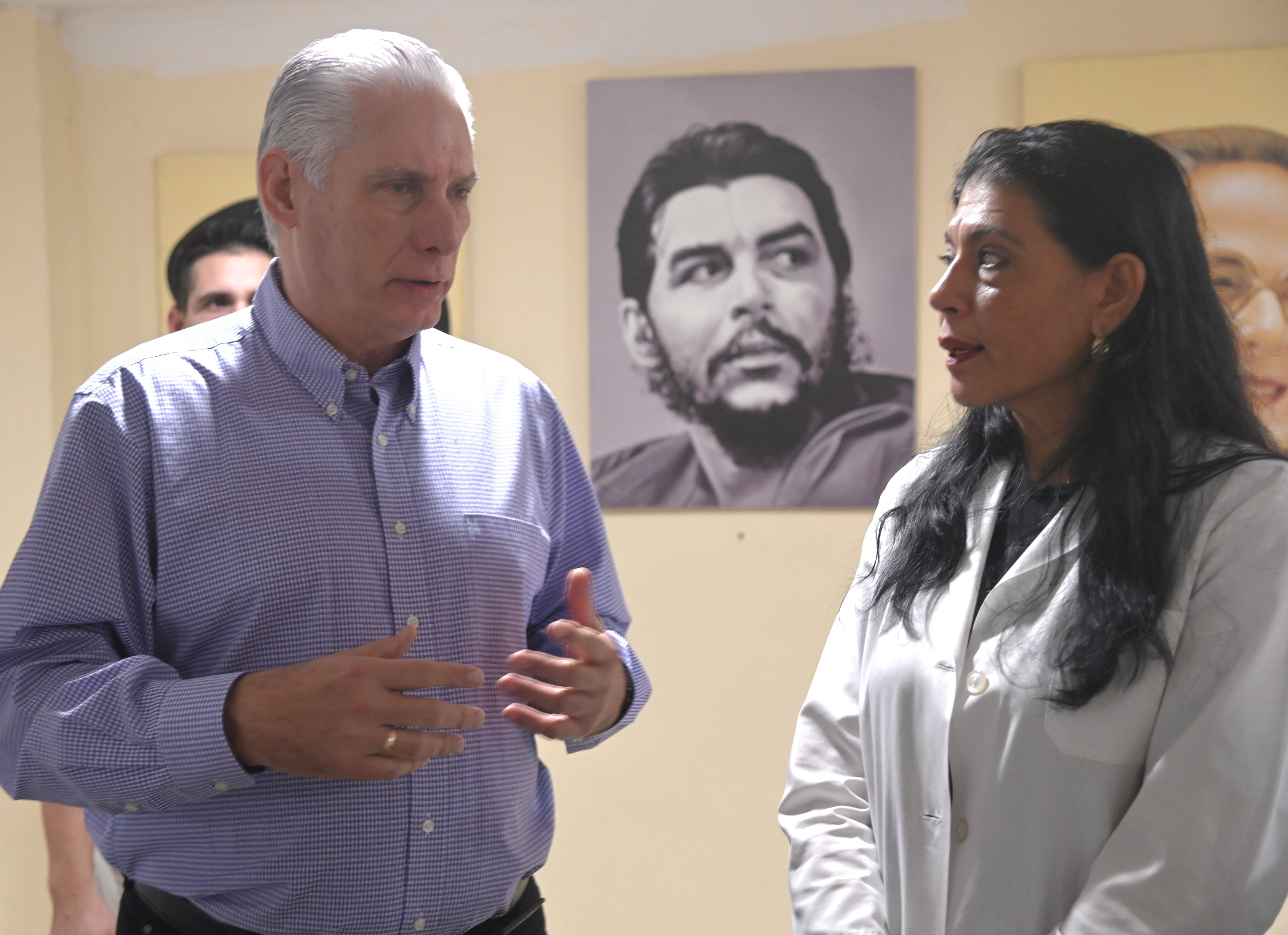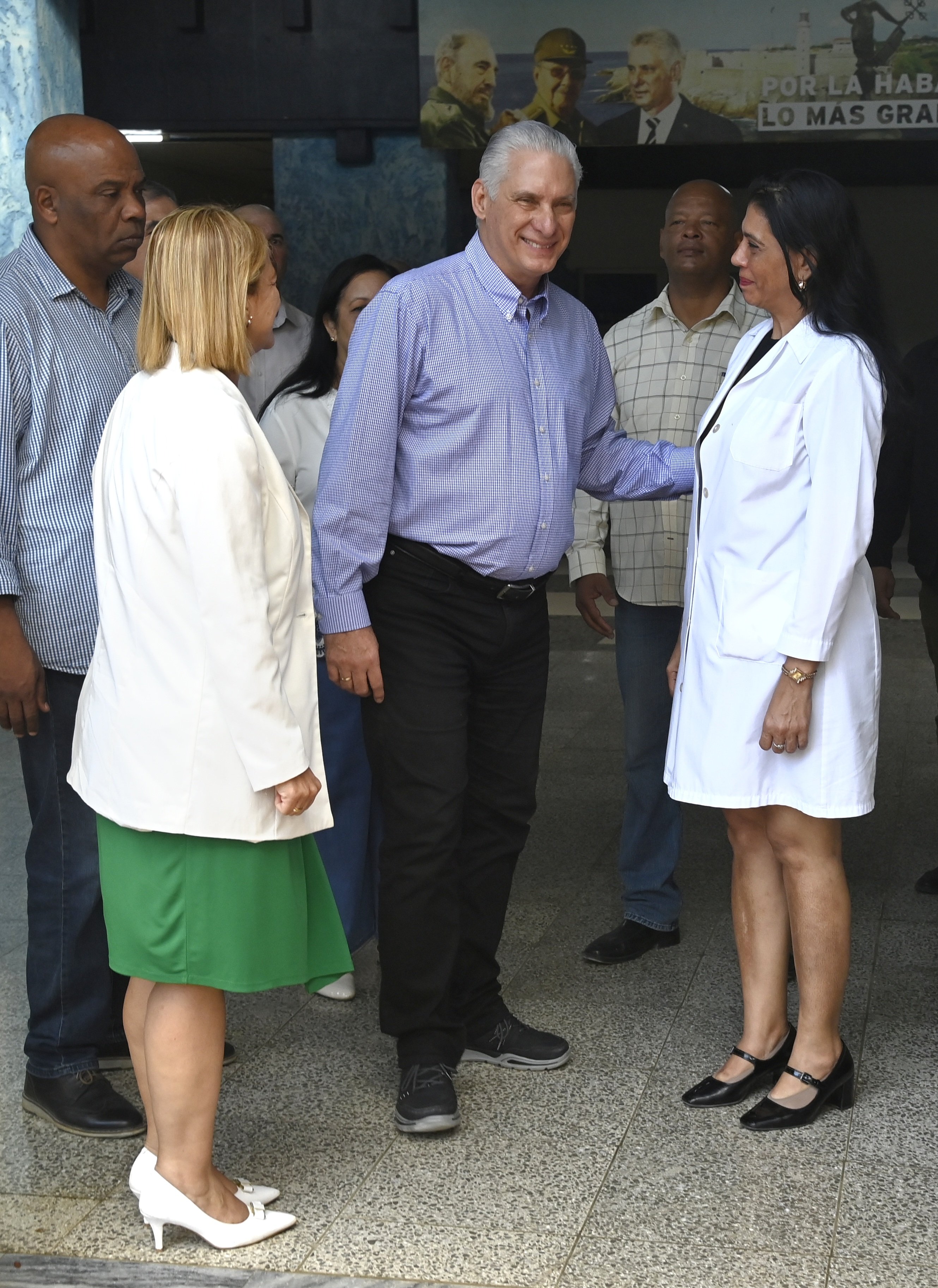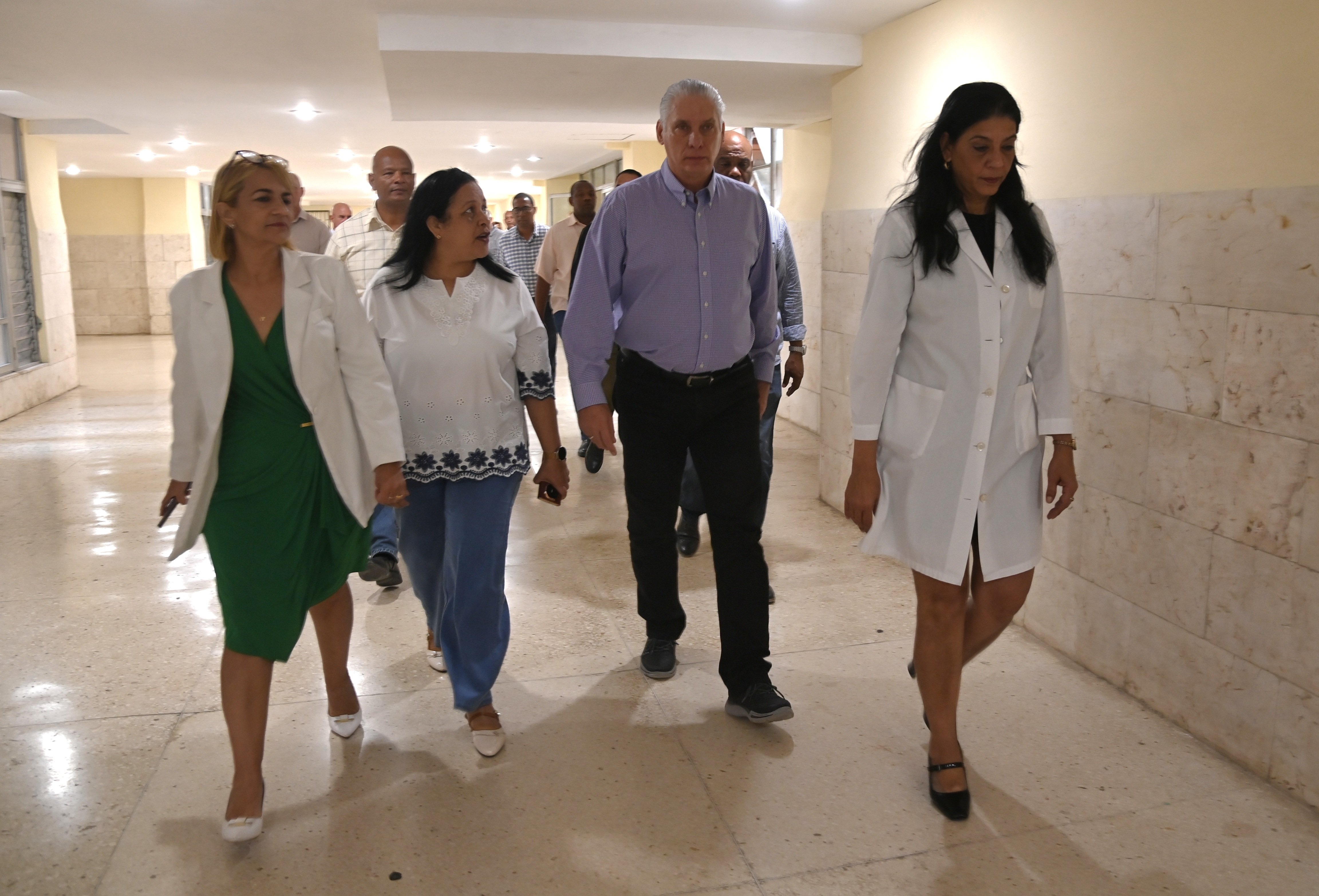 El encuentro entre el Presidente de la República con especialistas en pediatría y trabajadores y directivos del hospital Juan Manuel Márquez, contó con la participación, además, del viceprimer ministro Eduardo Martínez Díaz; la ministra de Comunicaciones, Mayra Arevich Marin, y la viceministra primera Salud Pública, Tania Margarita Hernández, entre otros responsables.