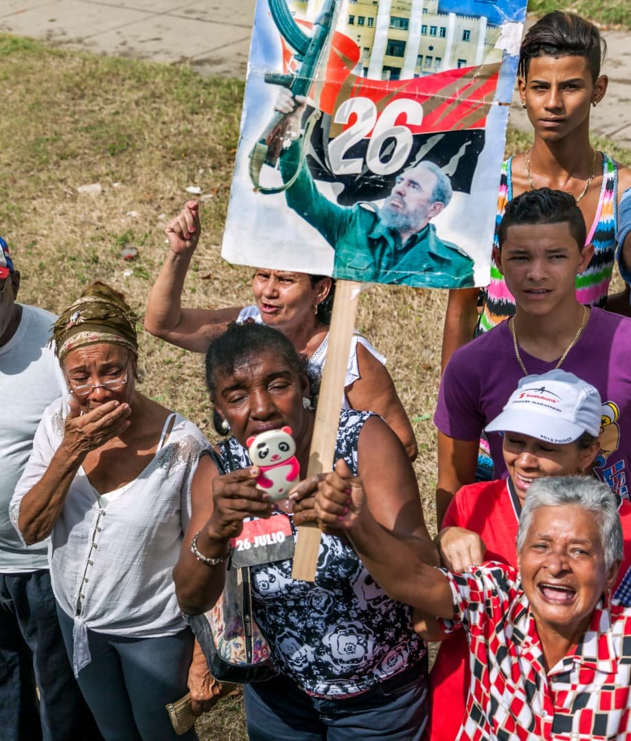 «Allá arriba lloré y grité varias veces ¡Viva Fidel!», para desahogarme, porque la emoción era mucha. Cuando cerraba el lente podía contemplar a los niños sobre los hombros de sus padres, jóvenes con el nombre del Comandante pintado en la cara, mucha tristeza», cuenta El Loquillo quien, siendo un niño sin zapatos que vendía periódicos en las calles habaneras, recibió al barbudo en la Virgen del Camino en 1959 mientras escuchaba a su madre exclamar: «¡Nos salvamos, hijo! ¡Nos salvamos!».