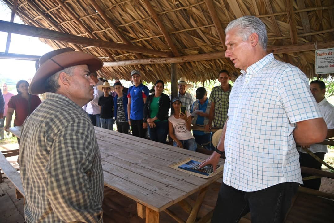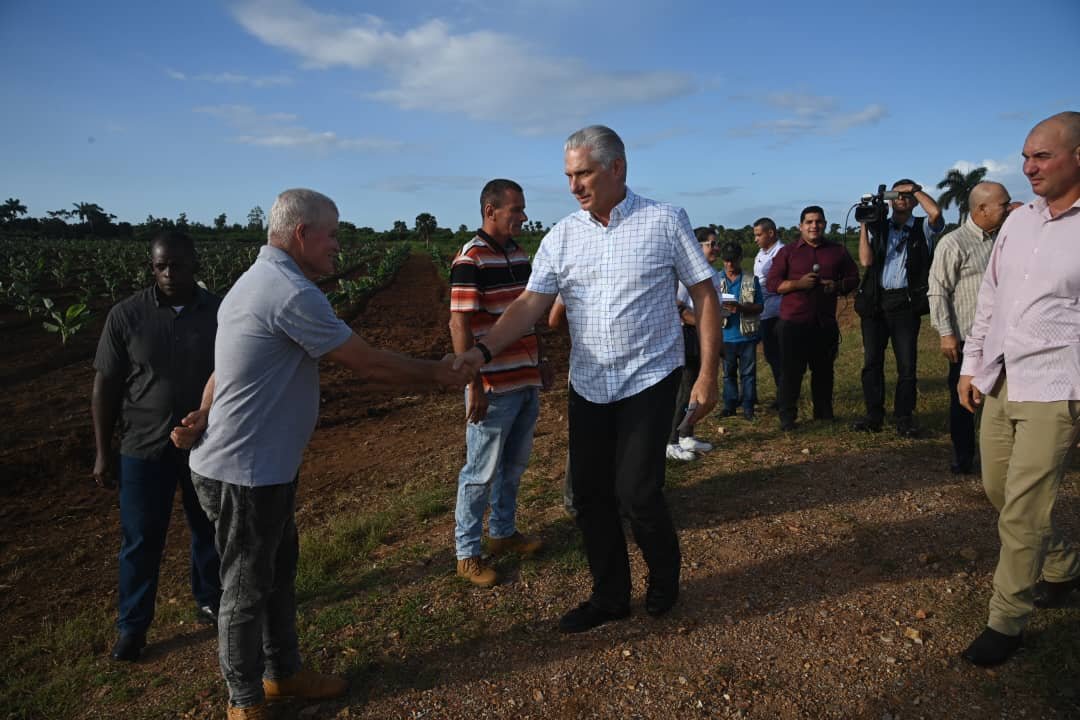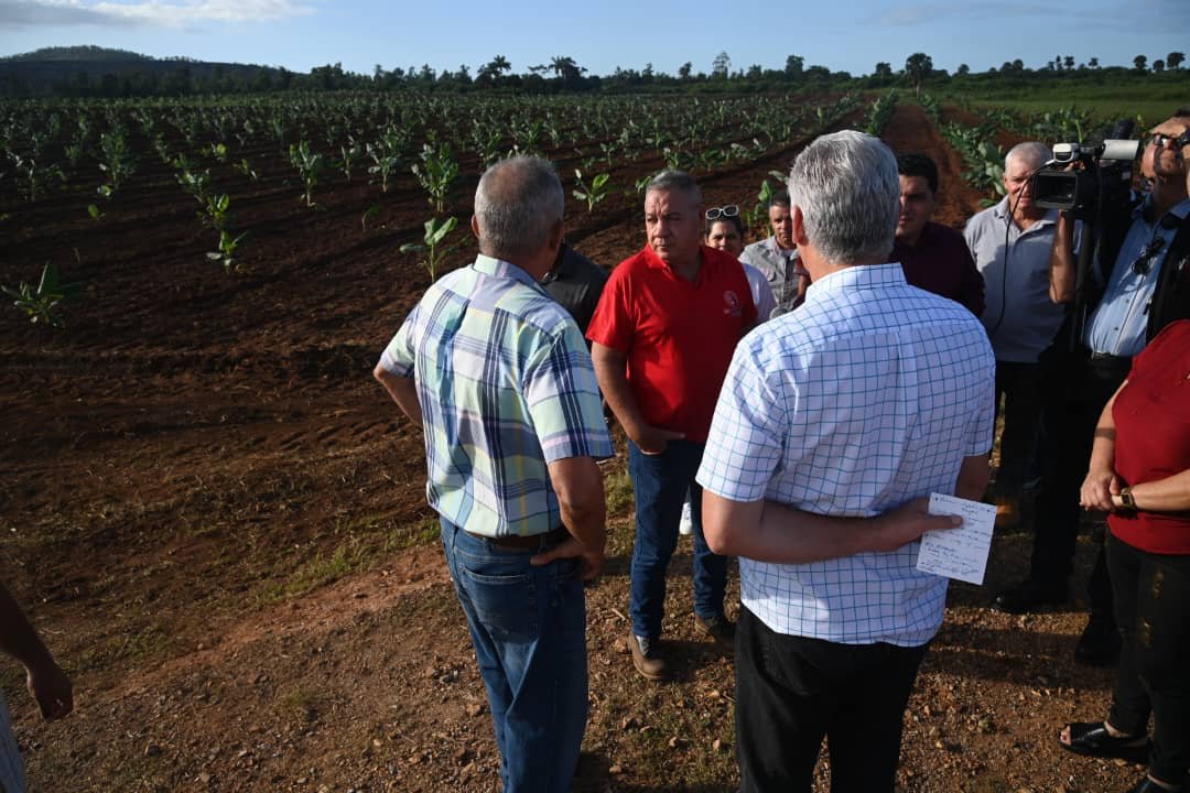 En Minas de Matahambre, territorio ubicado al norte de la provincia más occidental de Cuba, siempre acompañado por Yamilé Ramos Cordero, primera secretaria del comité provincial del Partido, y Eumelín González Sánchez, gobernador del territorio, el Jefe de Estado visitó también áreas de la Empresa Municipal Ganadera dedicadas a la siembra de cultivos varios, fundamentalmente plátano,