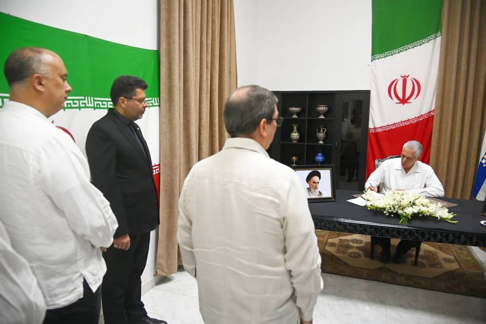 En la sede diplomática en La Habana, Díaz-Canel fue recibido por el embajador iraní Zabihollah Naderi, y estuvo acompañado en el sencillo homenaje por el canciller cubano, Bruno Rodríguez Parrilla, y el director general de Asuntos Bilaterales del Ministerio de Relaciones Exteriores, Carlos Miguel Pereira Hernández.