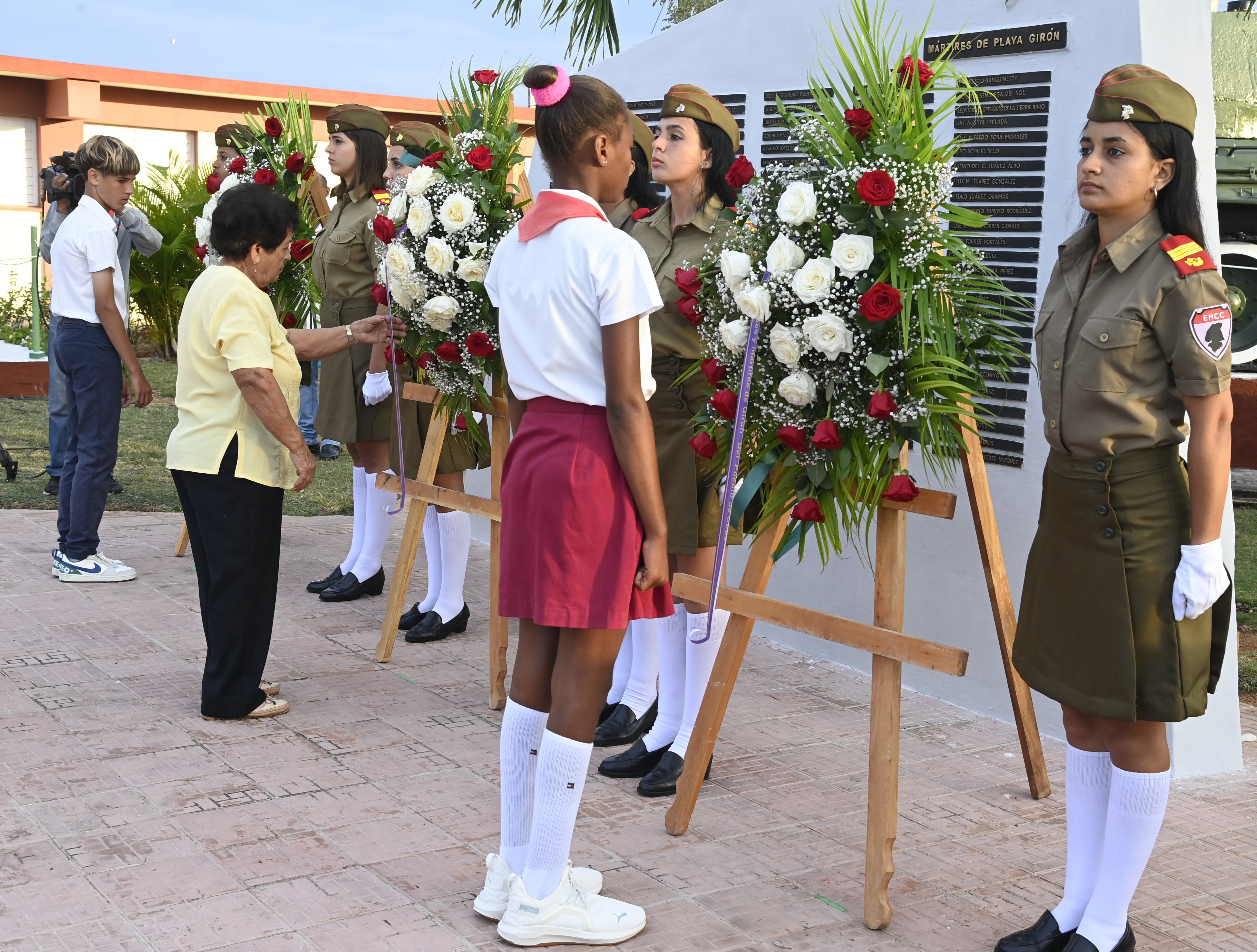 PLAYA GIRÓN, Ciénaga de Zapata.-Primero, la voz de “firmes”. Luego, las notas del Himno Nacional; y para rasgar el frescor de la mañana de este domingo 19 de abril, el Toque de Silencio en una ceremonia de homenaje a lo heroico: allí, en la amplia placa donde están grabados los nombres de los mártires de Playa Girón, a solo metros del Museo, quedaron colocadas flores blancas; la primera, de manos del Presidente de la República de Cuba, Miguel Díaz-Canel Bermúdez.