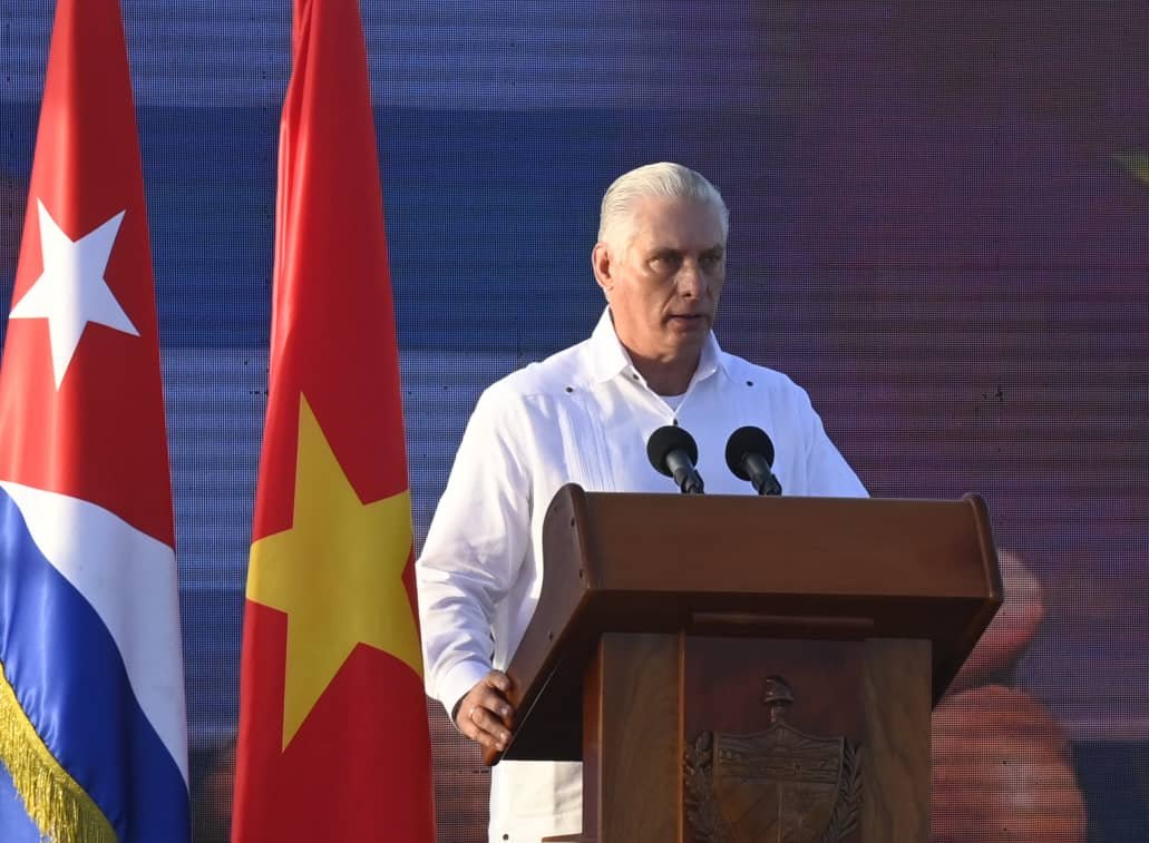 «Gracias, Vietnam, por la solidaridad, la generosidad, el ejemplo», subrayó el Jefe de Estado en acto en el que también se celebró el 68 aniversario del Desembarco del Yate Granma y el Día de las FAR, a cuyos combatientes transmitió una felicitación.
