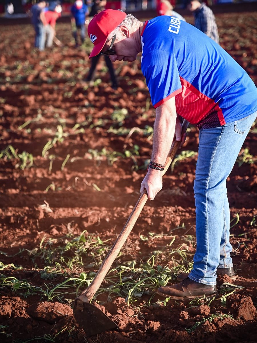 A pie de surco, y bajo un sol que en el amanecer no rasgaba aún la neblina, el Primer Secretario del Comité Central del Partido Comunista de Cuba y Presidente de la República, Miguel Díaz-Canel Bermúdez, acompañó labores de siembra en el municipio de Bauta, en la provincia de Artemisa. Allí, varias generaciones de cubanos se enfrascaron en la tarea agrícola, en un mensaje que recuerda la importancia que hoy tiene la producción de alimentos.