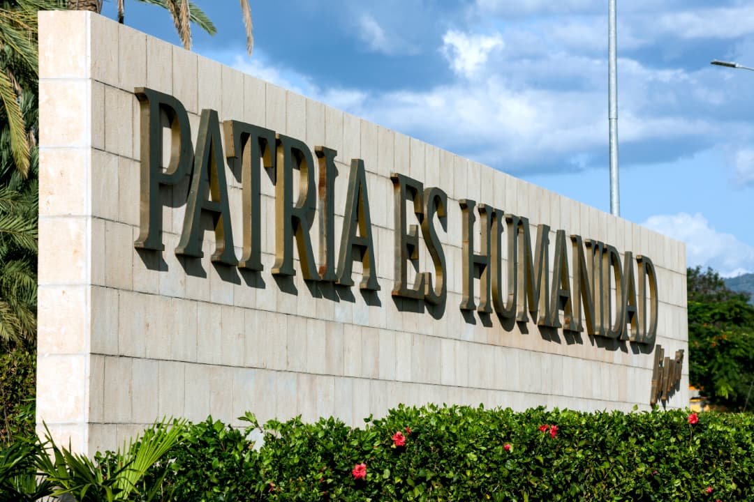 Un cartel de cemento indica al visitante su llegada a este territorio; frente a él, dos jóvenes levantan una foto de Fidel. Detrás, dos banderas a media asta y, sobre paredes azules, blancas y rojas, la frase: «Santiago de Cuba, rebelde ayer, hospitalaria hoy y heroica siempre».