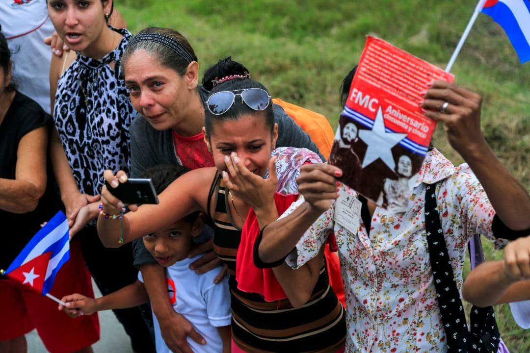 Ancianos en sillas de ruedas llegan hasta la orilla de la calle, hombres con el sombrero en el pecho, con niños en los brazos, jóvenes que sostienen carteles; y el sentir de ese pueblo se lee con letras blancas sobre un muro de cemento: «Fidel, siempre estaremos junto a ti y te recordaremos por siempre. ¡Vivan Fidel y Raúl!».