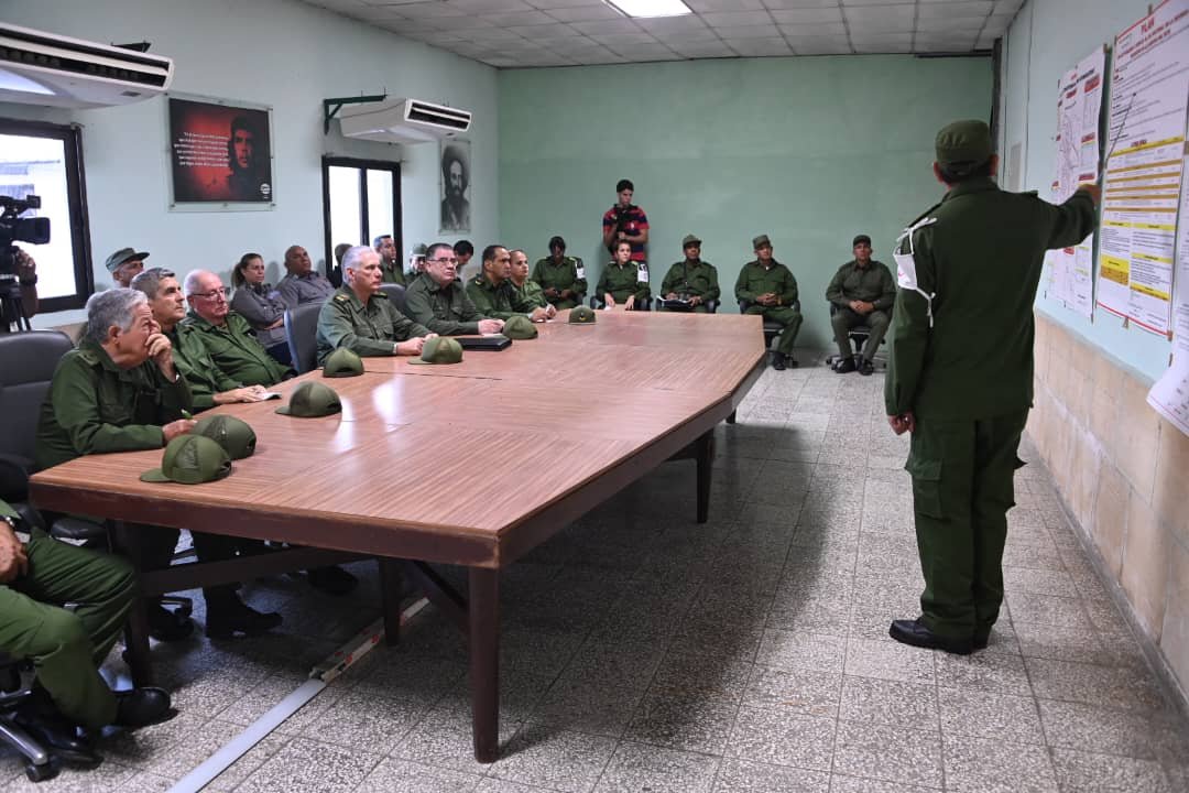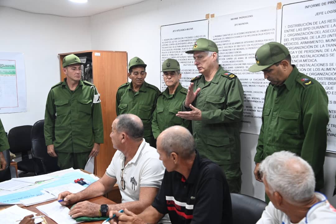 El compañero Díaz-Canel indagó sobre los planes de aviso, por los sistemas para garantizar la movilización, y la ubicación en la defensa de los habitantes de la zona y otras tareas planificadas.