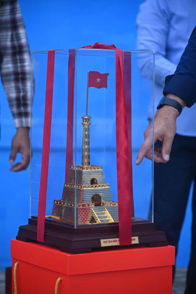 “En este lugar, ya donde está la escalinata, en estos momentos es el lugar donde reposan los restos de Ho Chi Minh; o sea, es el Mausoleo de Ho Chi Minh”, explicó el mandatario señalando a una de las partes de las réplicas.