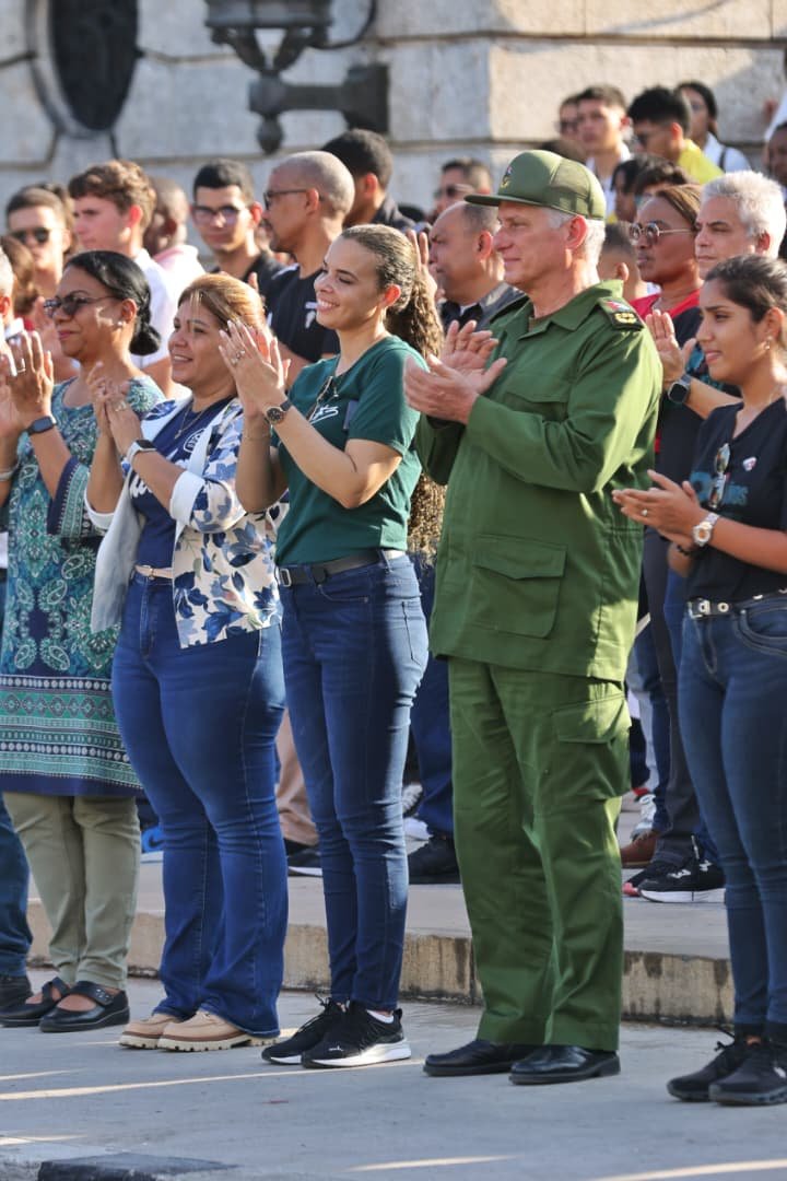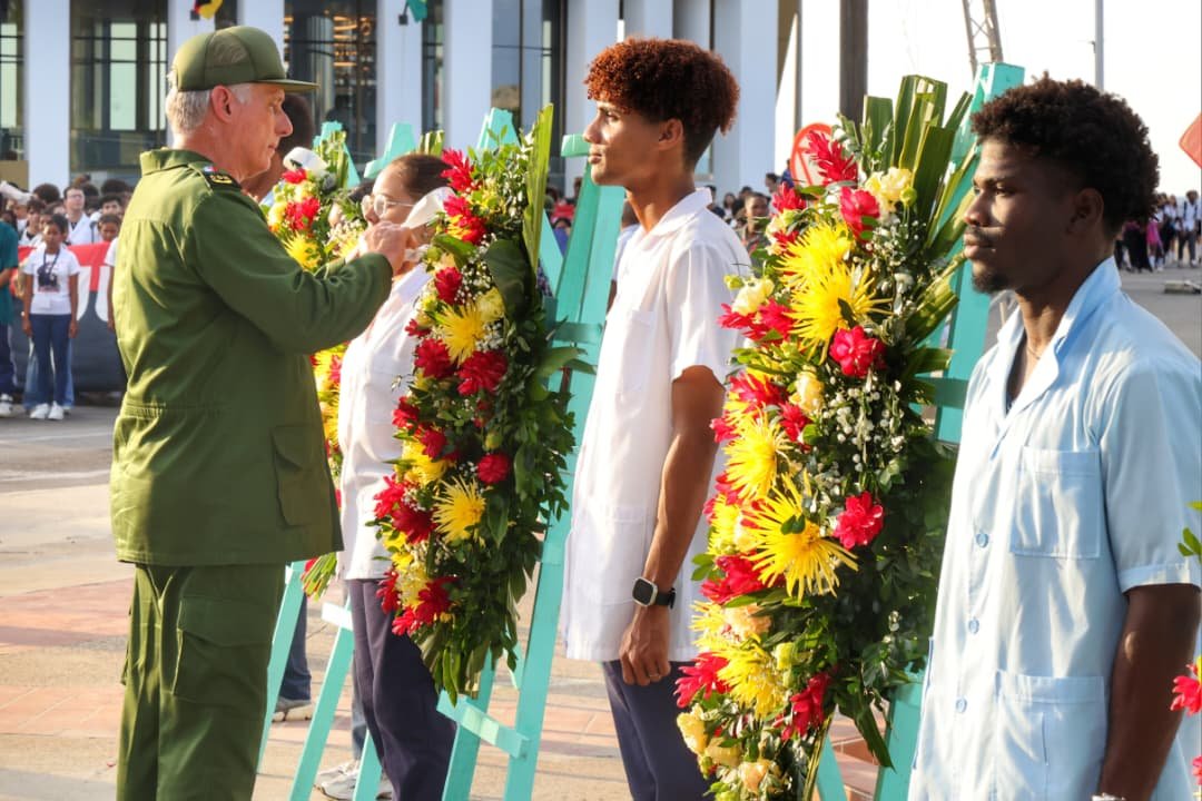 Y en homenaje a los estudiantes se colocaron ocho ofrendas florales. Díaz-Canel, junto a las autoridades que participaron en la marcha, hizo la Guardia de Honor como tributo a quienes se convirtieron en mártires de su Patria.