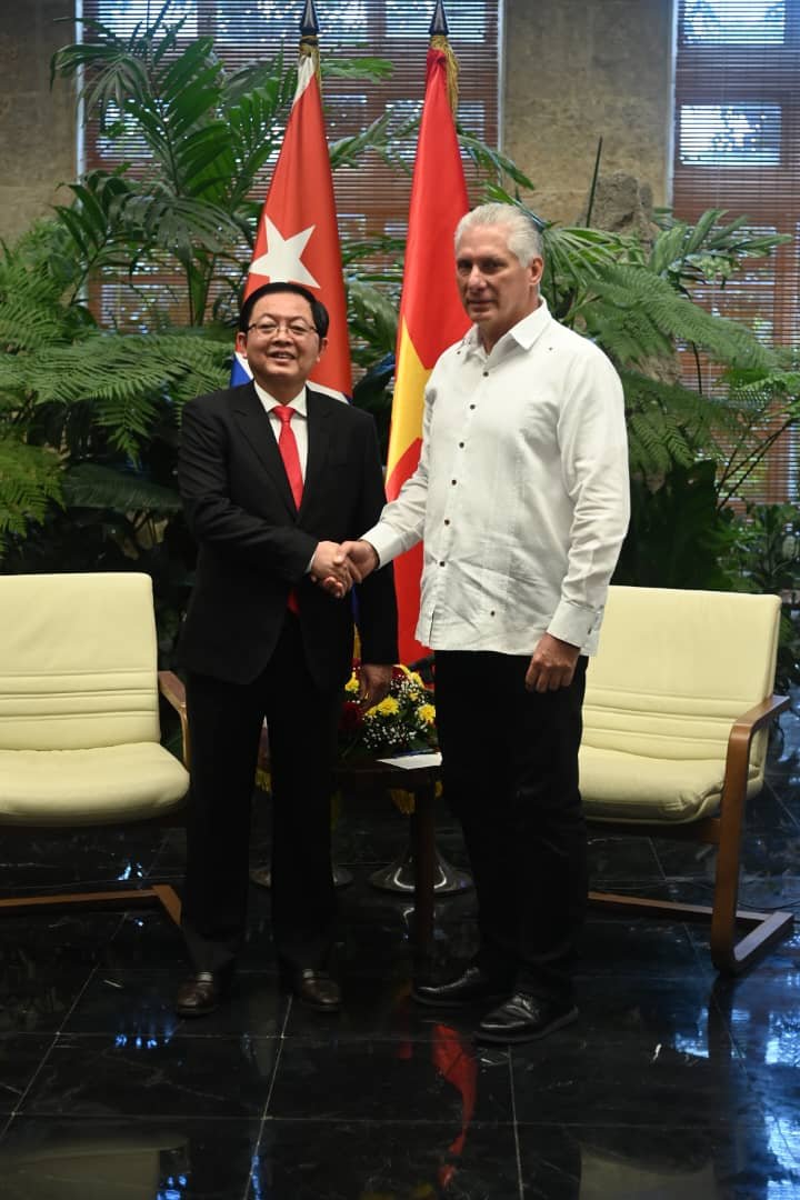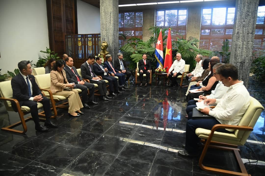 El Primer Secretario del Comité Central del Partido Comunista y Presidente de la República, Miguel Díaz-Canel Bermúdez, sostuvo un encuentro este martes, en el Palacio de la Revolución, con Ho Phuoc Dung, miembro del Comité Central del Partido Comunista de Vietnam y viceprimer ministro de la República Socialista de Vietnam