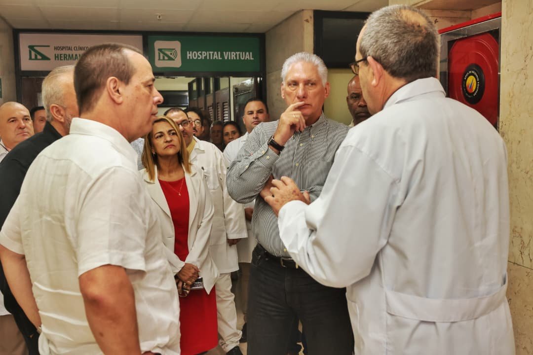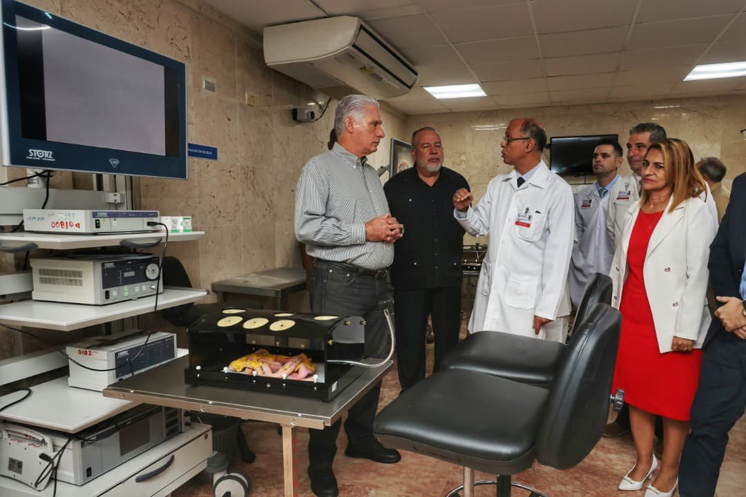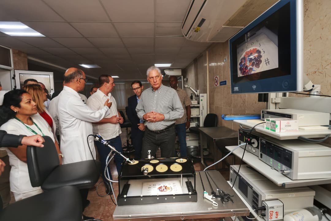 El segundo punto en la agenda del recorrido de la dirección del país fue el Hospital Clínico Quirúrgico “Hermanos Ameijeiras”, ubicado en el capitalino municipio de Centro Habana. Allí, casi al despedirse de la emblemática institución, el Presidente de la República de Cuba expresó desde la admiración: “No pensaba que tuviésemos este nivel de avance”.