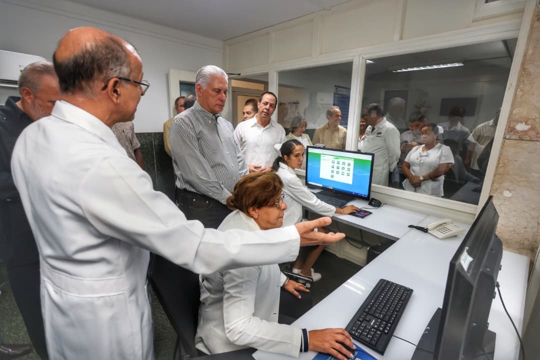 “Hay que seguir con ese propósito: Que el sector se convierta en un sector digitalizado”, comentó el Presidente Díaz-Canel Bermúdez una vez que escuchara todo lo que sucede en el piso 16 y que Suiberto Hechavarría Toledo -Jefe del Proyecto de Hospital Virtual y Jefe del Departamento de Investigaciones Científicas del Hospital “Hermanos Ameijeiras”- explicara en detalles a la dirección del país sobre cómo allí marcha el uso de las nuevas tecnologías de la Información y la Comunicación.